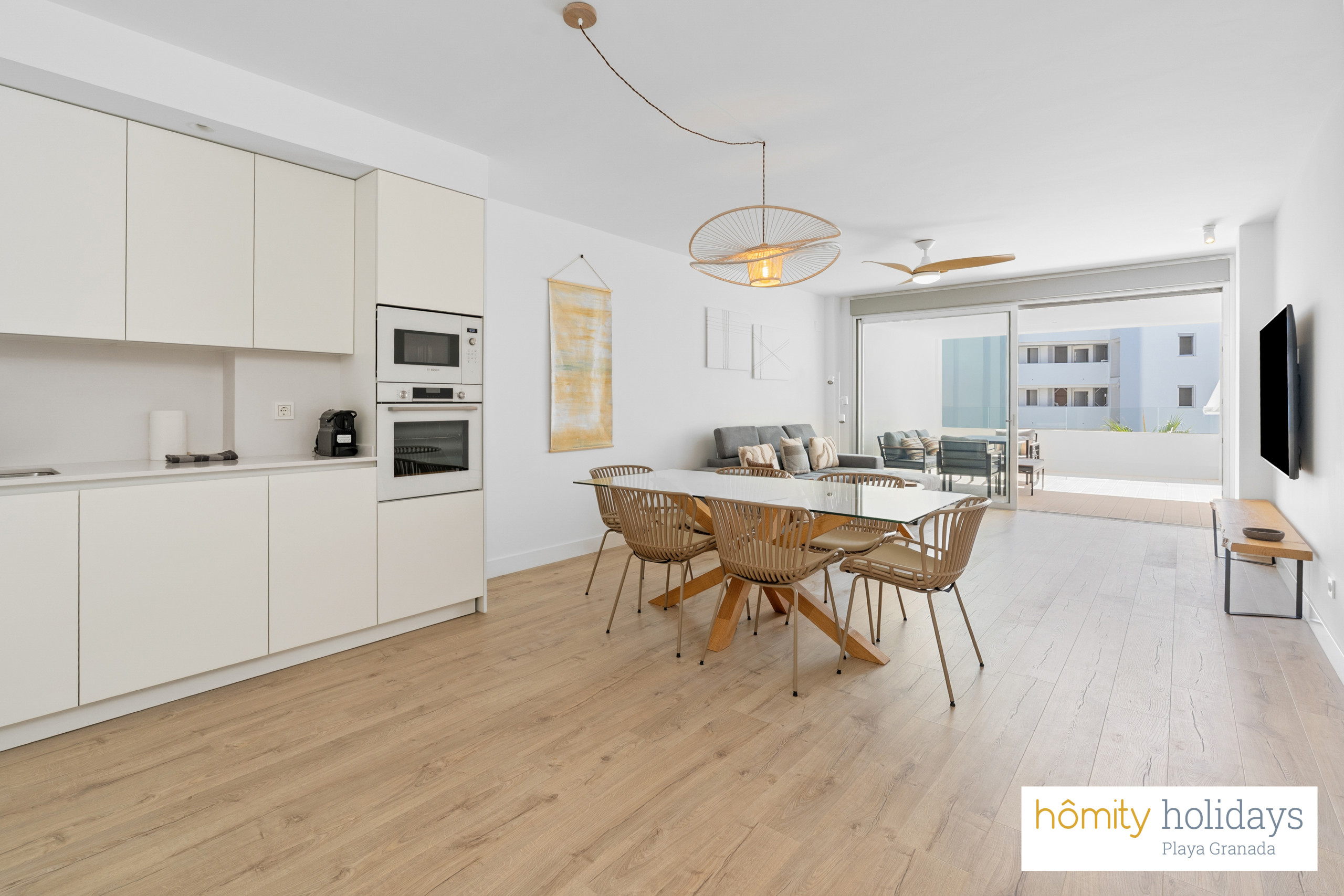 Dispone de ascensor, jardín, 21 m² de terraza, lavadora, plancha, acceso internet (wifi), secador, zona infantil, pista de padel, calefacción bomba de calor, aire acondicionado en todo el alojamiento, piscina comunitaria, garaje en mismo edificio, 3 aparatos eléctricos anti-mosquitos, 3 ventiladores, 3 Televisores.