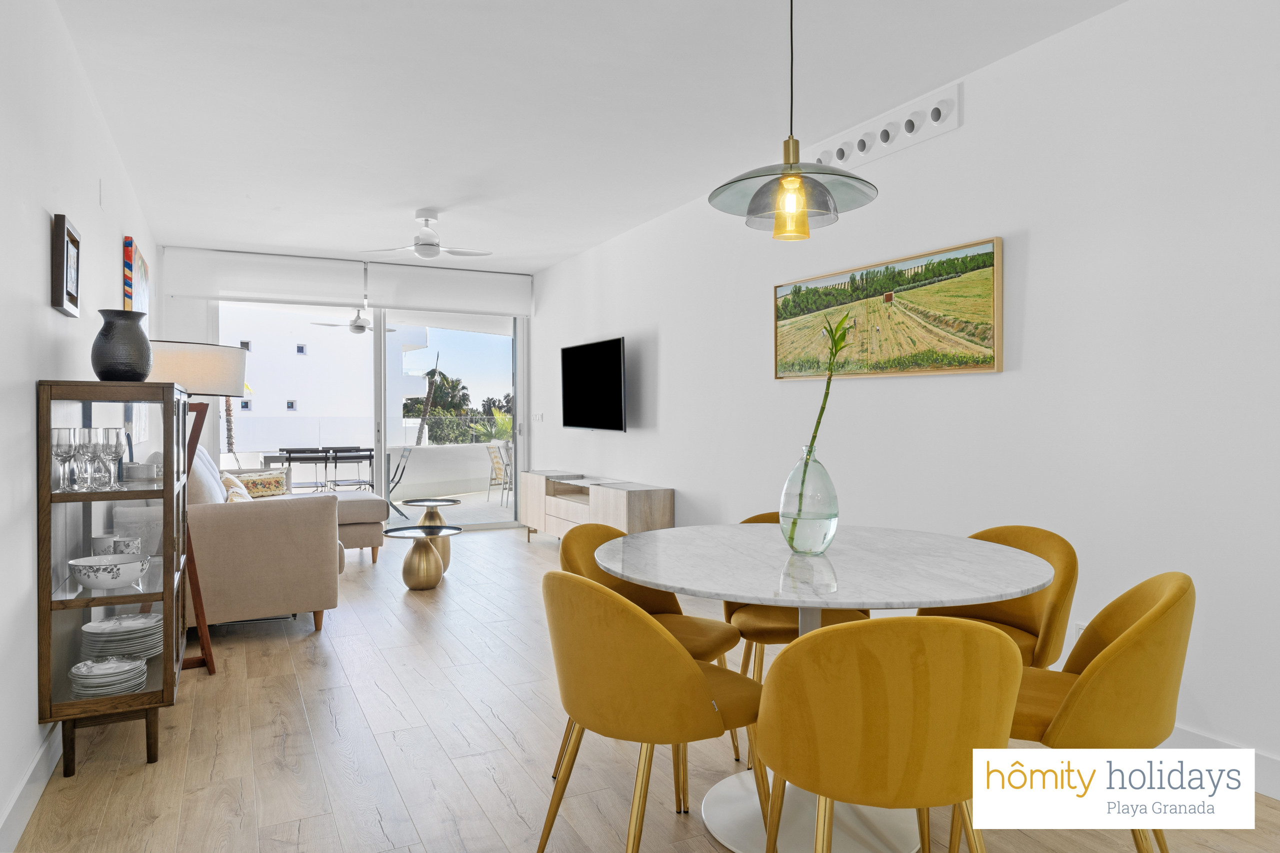 Se encuentra a 20 m del supermercado "Supermercado Elemen", 900 m de la playa de roca, 1 km del campo de Golf "Los Moriscos Club de Golf", 95 km de la pista de esquí "Sierra Nevada", 100 km del parque natural "Sierra Nevada", 100 km del aeropuerto internacional "Aeropuerto Internacional de Málaga" y está ubicado en una zona tranquila y junto al mar.