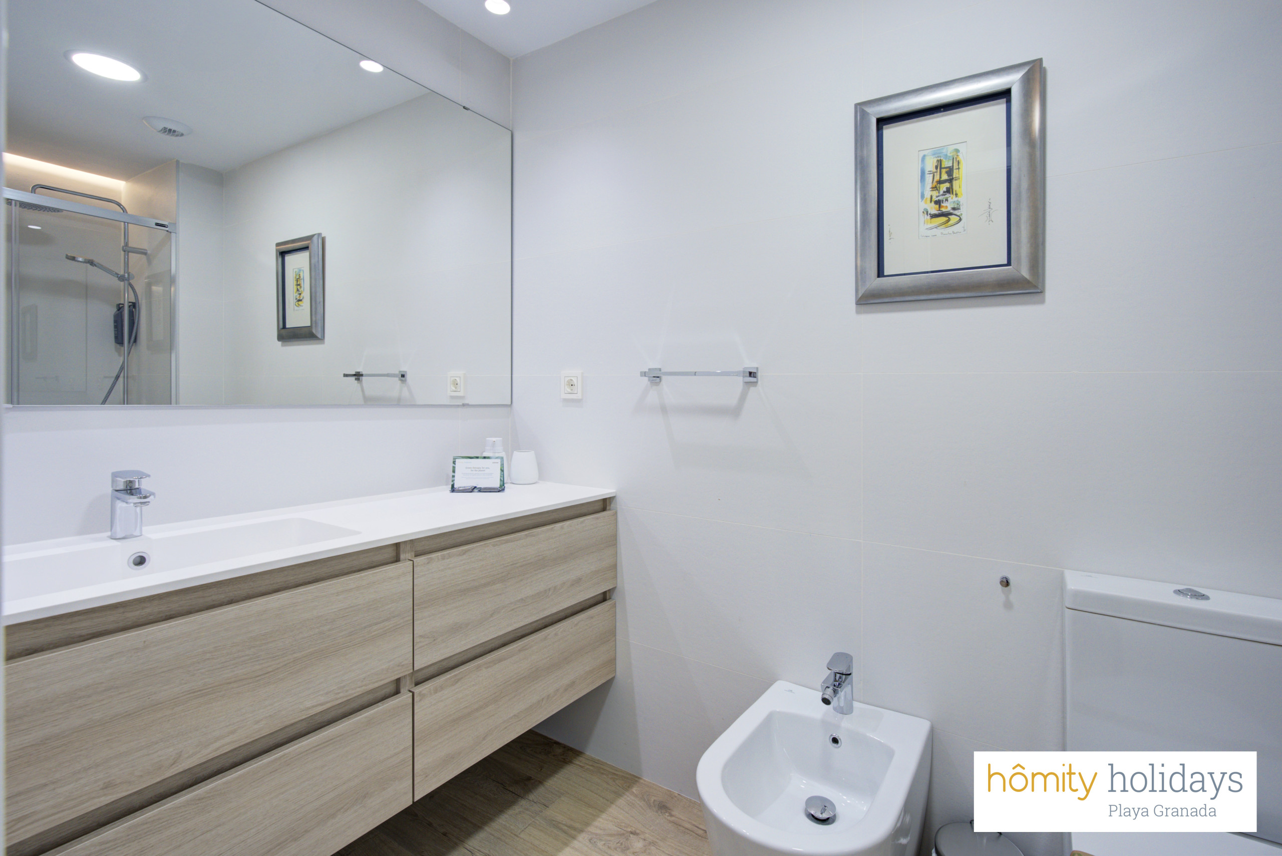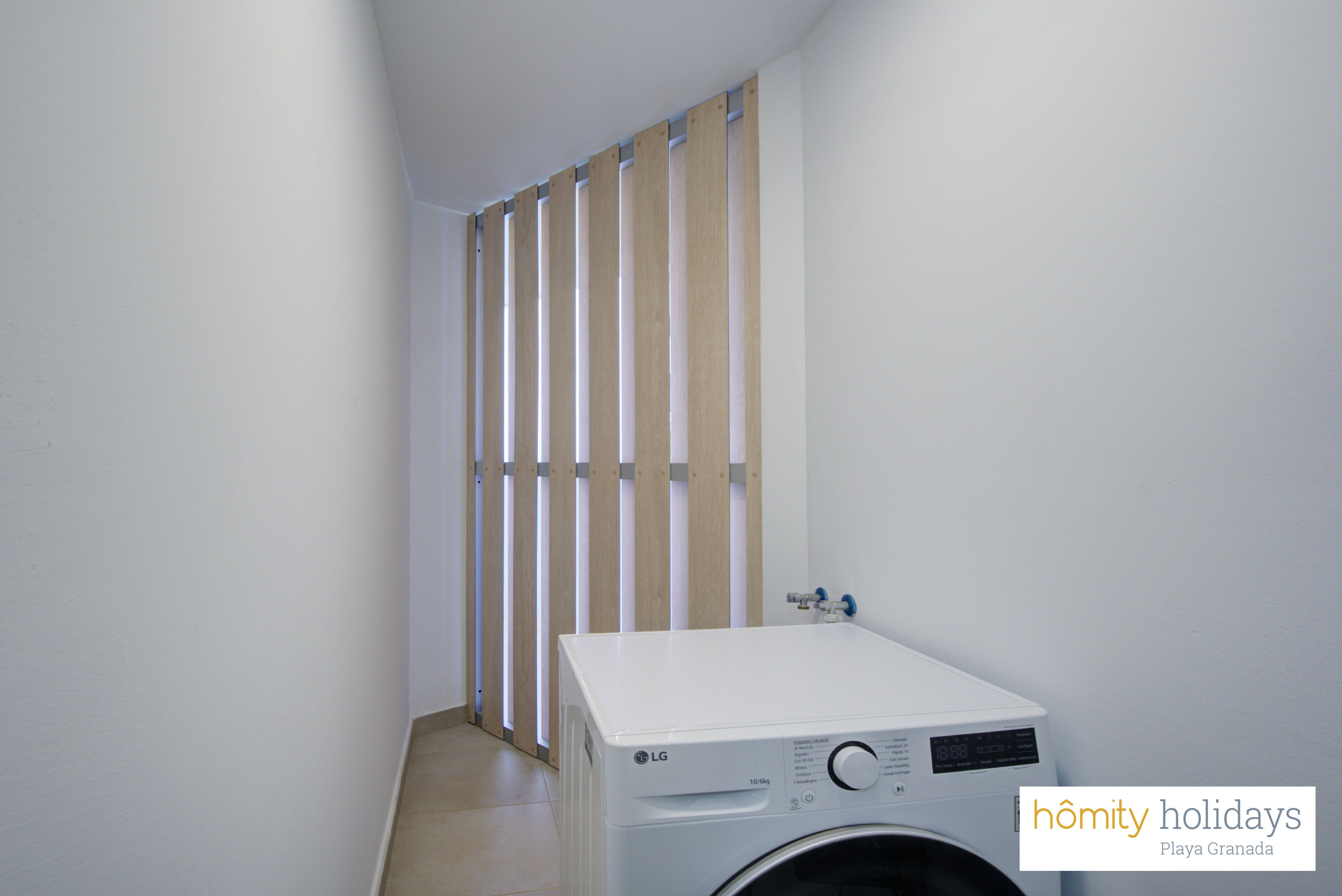 Dispone de ascensor, 24 m² de terraza, lavadora, plancha, acceso internet (wifi), secador, zona infantil, pista de padel, calefacción bomba de calor, aire acondicionado en todo el alojamiento, piscina comunitaria, garaje en mismo edificio, 2 aparatos eléctricos anti-mosquitos, 3 ventiladores, 3 Televisores.