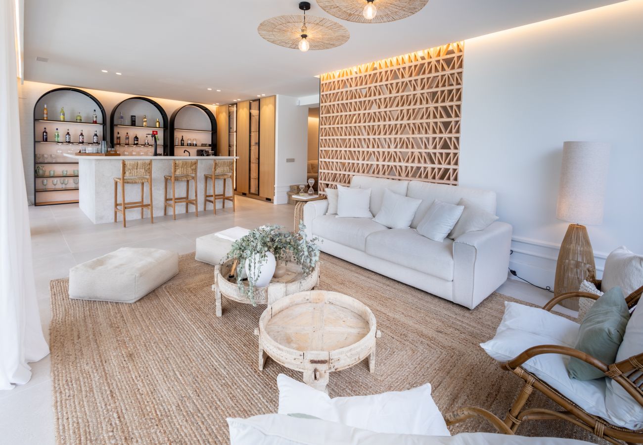 Decorada de forma exquisita, dispone de jardín, terraza, sala de bar, cómodos sofás tanto en el interior como en el exterior, tumbonas y salón de cine con proyector y pantalla de 120 pulgadas.