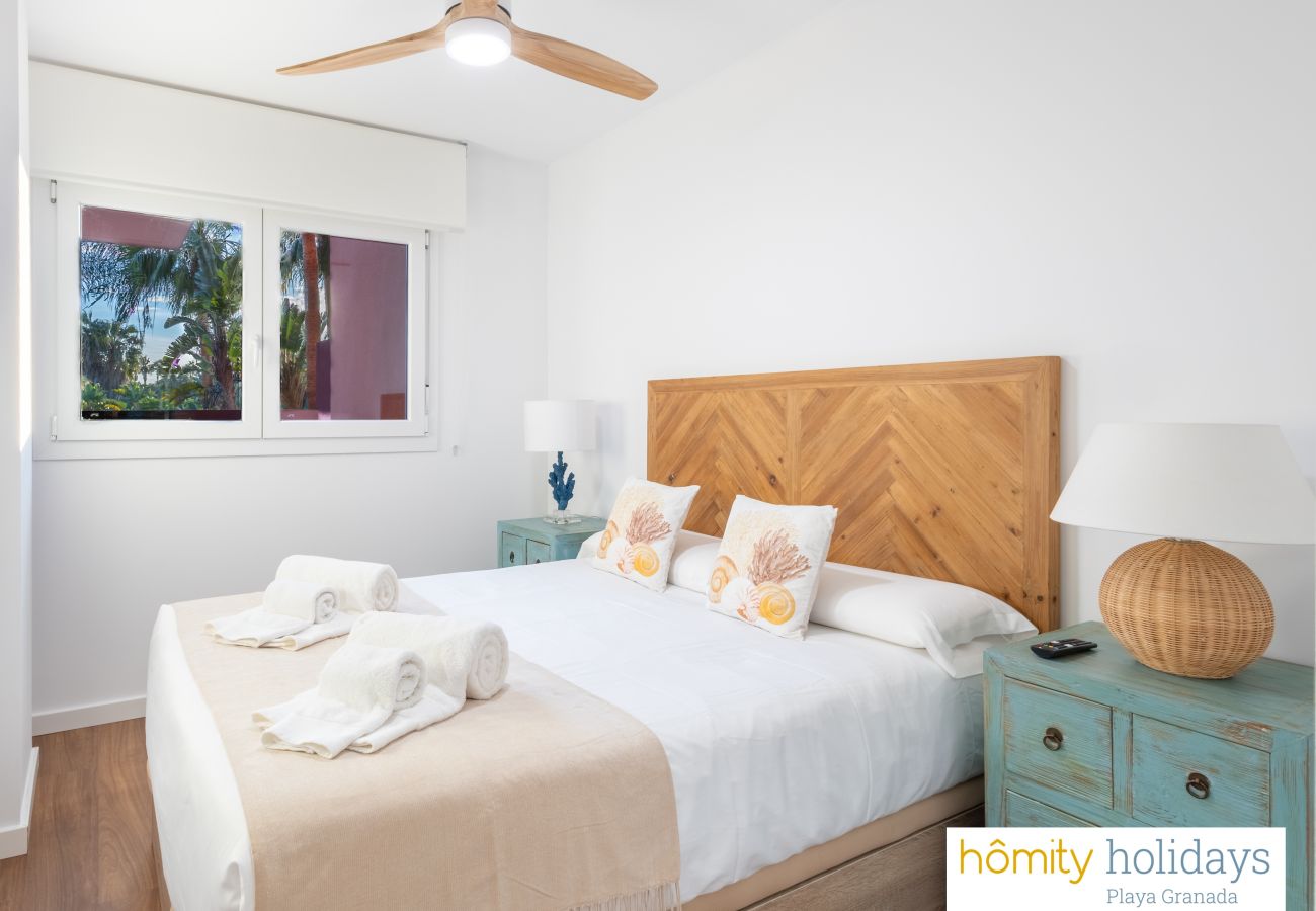 Denne luksuriøse lejlighed har 2 soveværelser, plads til 4 personer, et areal på 65 m² og en terrasse på 11 m². Den ligger 900 m fra stranden og 1 km fra golfbanen.