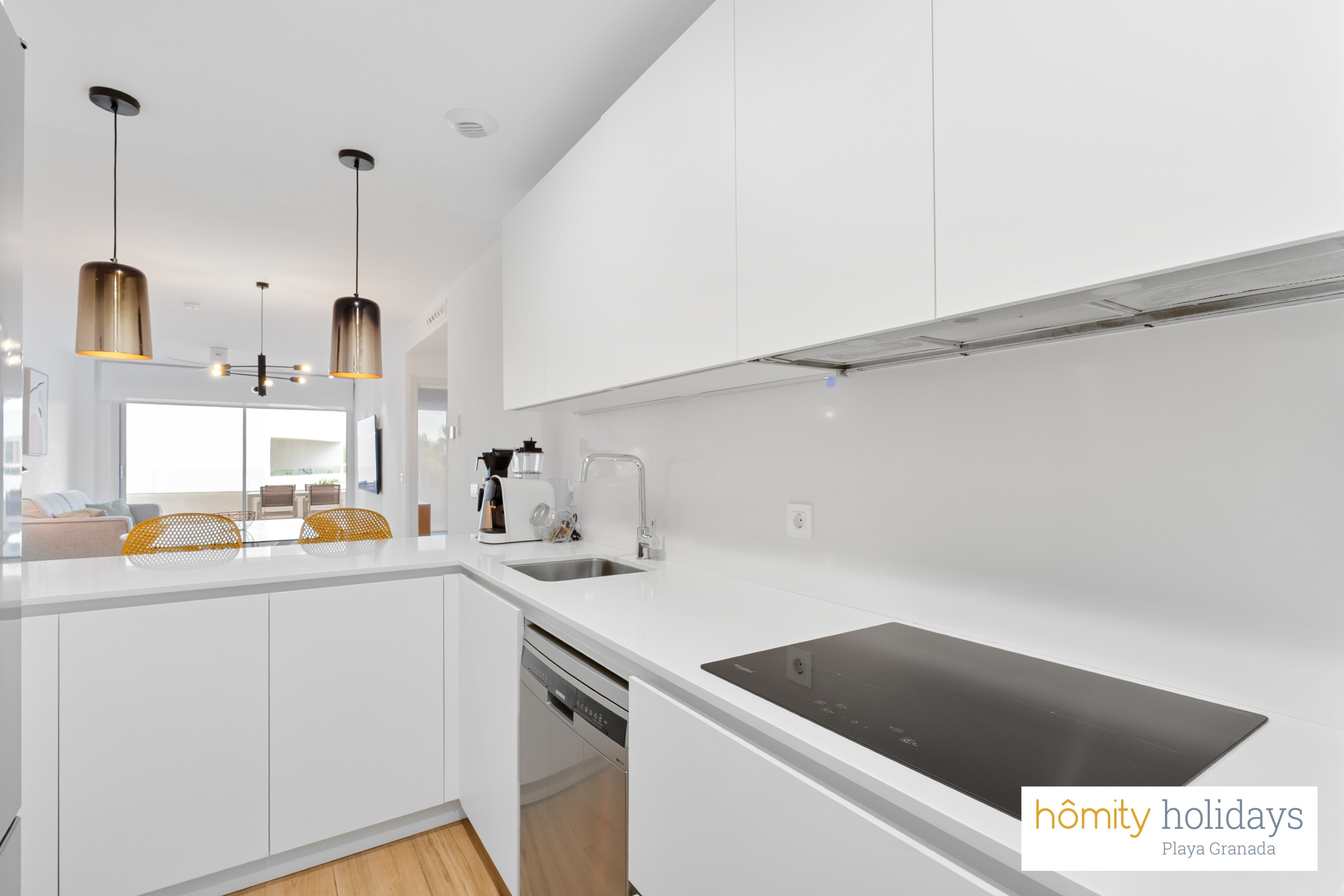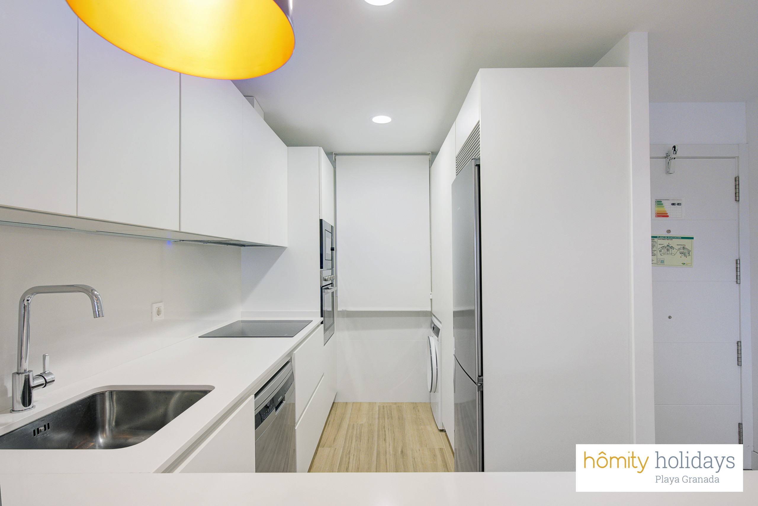 Den er fuldt udstyret med topmoderne husholdningsapparater (som køleskab, opvaskemaskine, ovn, mikroovn, kaffemaskine og brødrister, blandt andet) og alt det køkkenudstyr, der er nødvendigt til madlavning. Derudover er der tv i stuen og alle soveværelser.