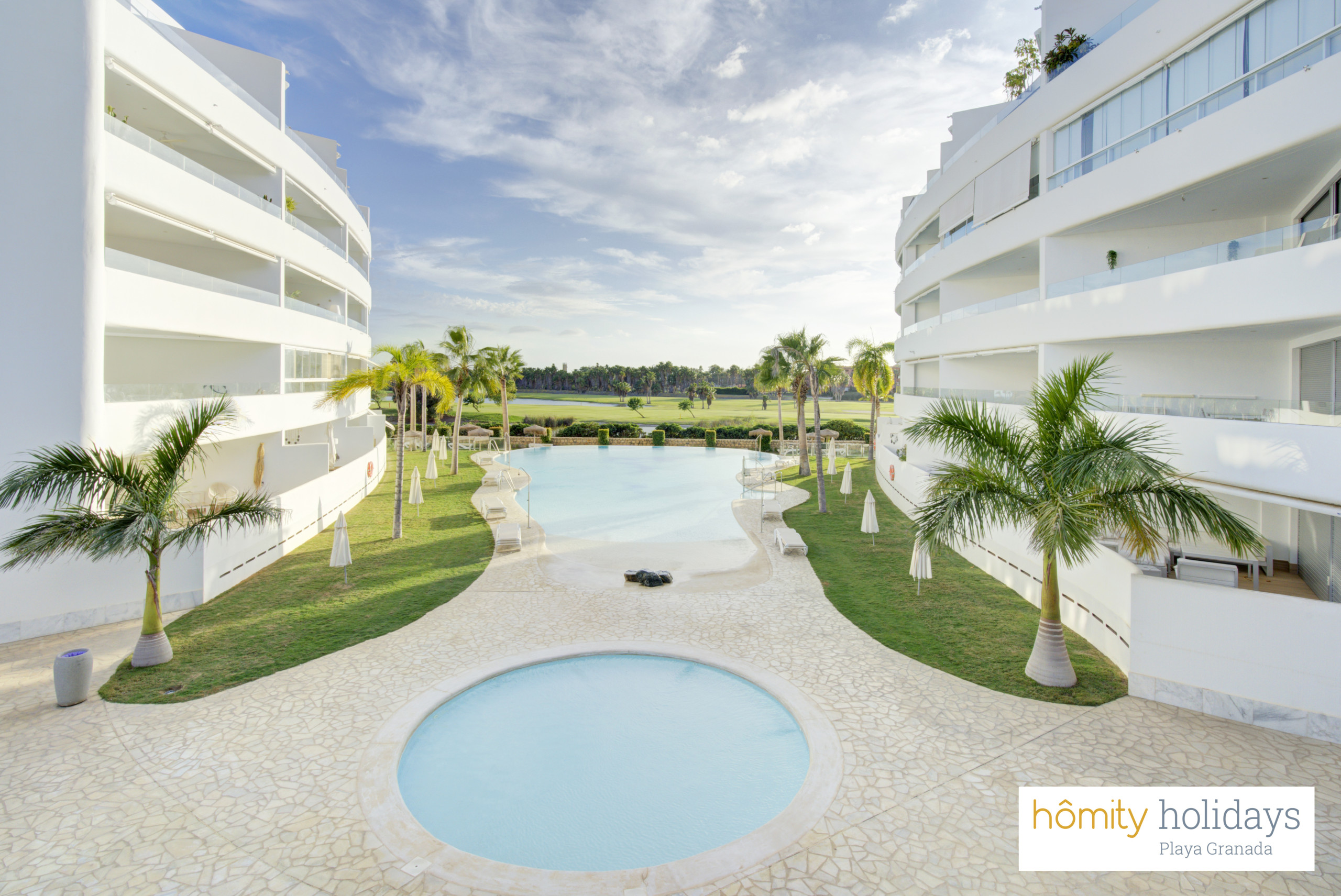 De fælles områder tilbyder alle bekvemmeligheder som fælles swimmingpool og børnepool, børneområde, klatrevæg, elevator eller garage i selve bygningen.
