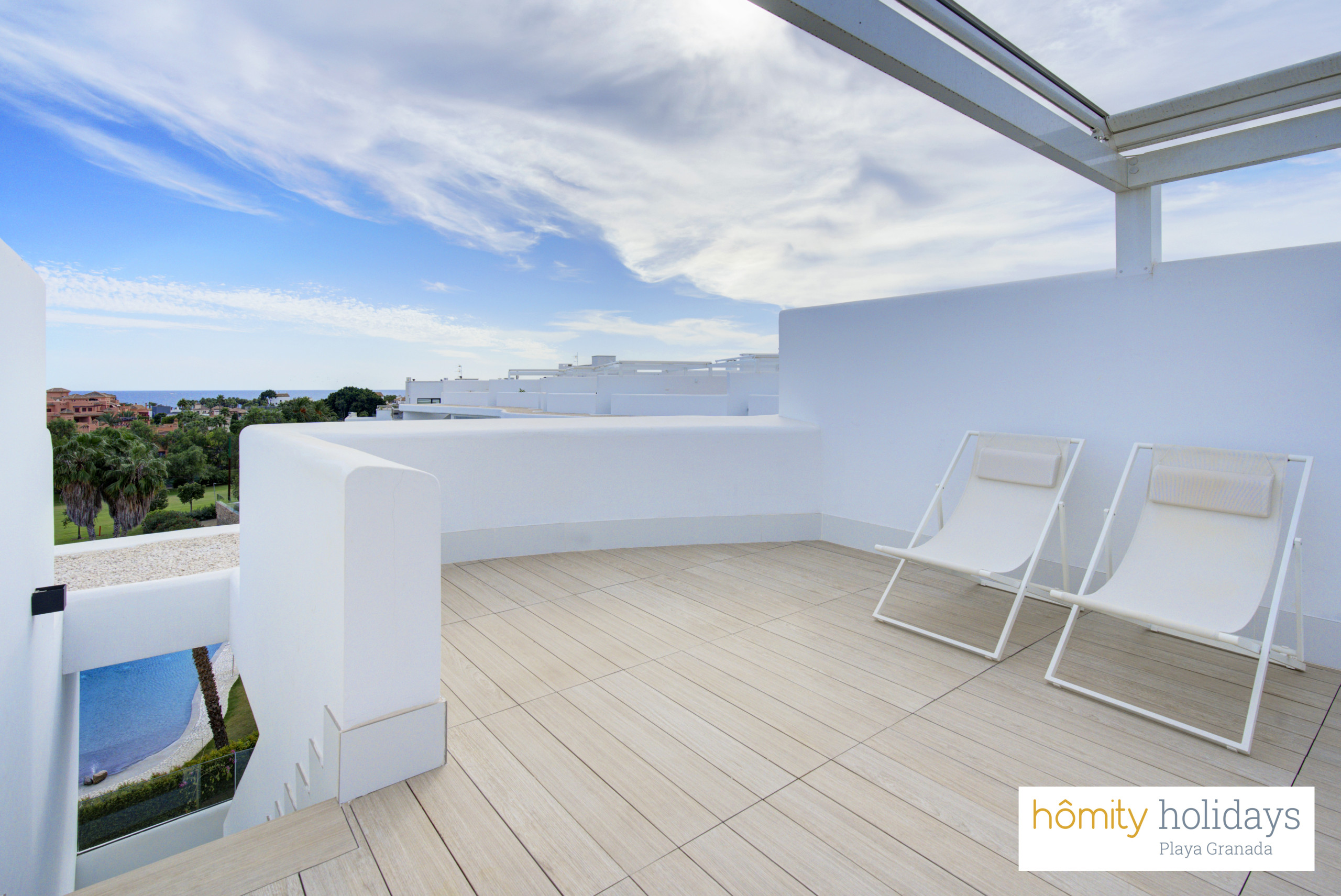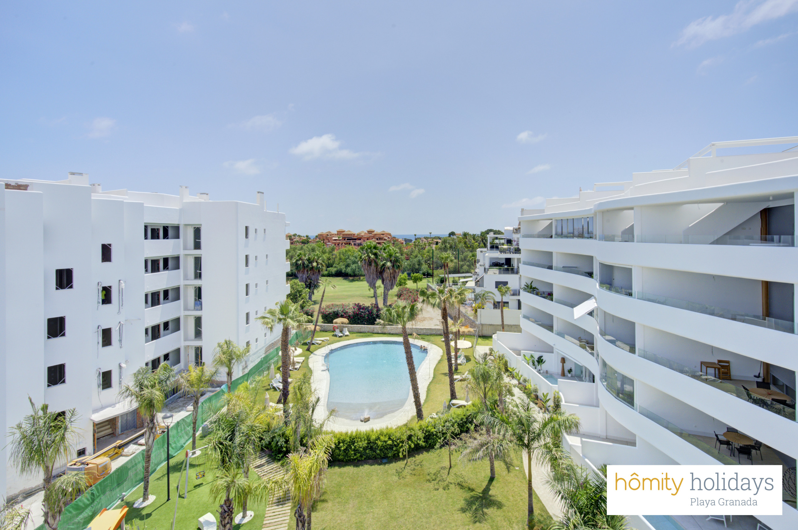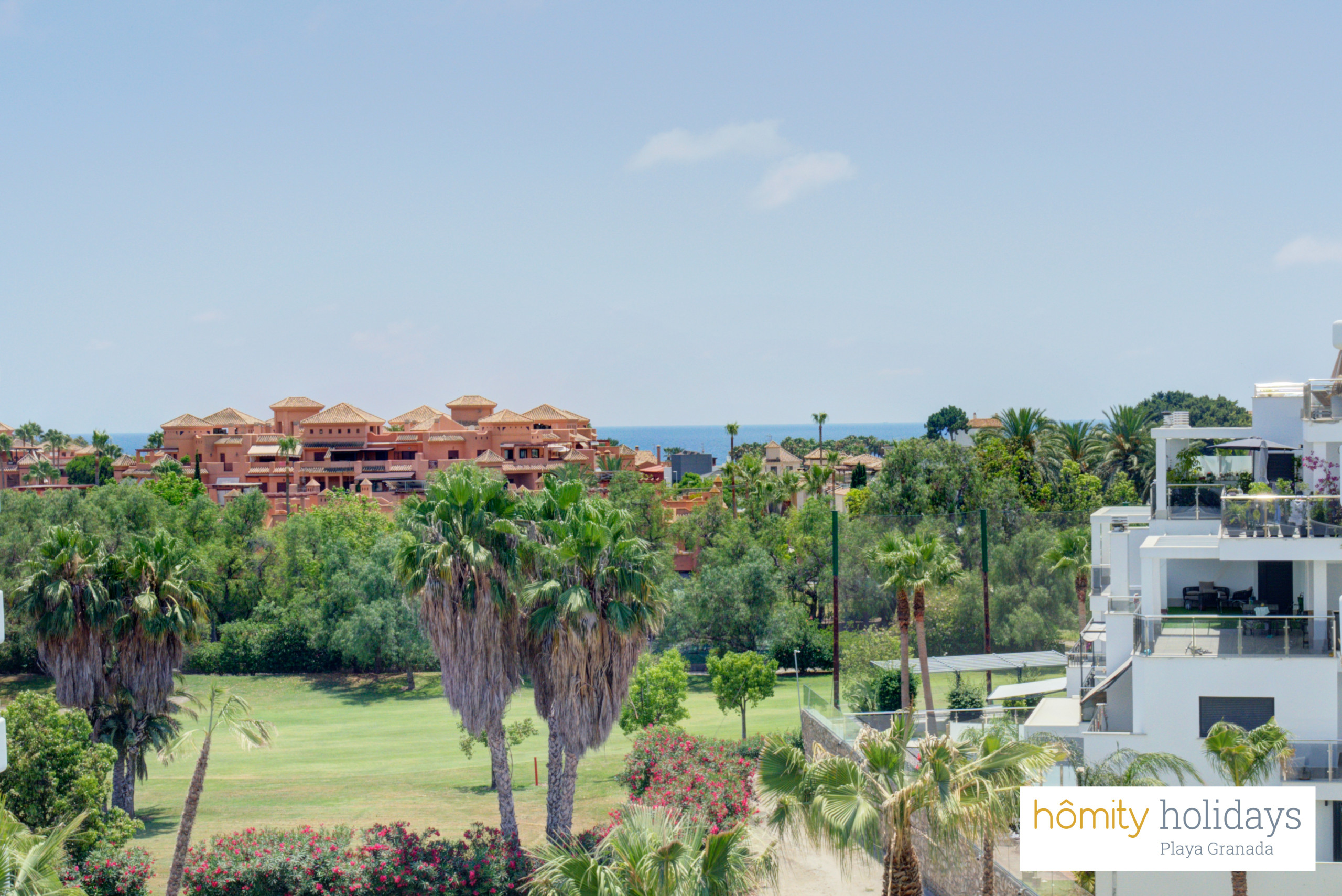 Tilbyder elevator, terrasse 100 m², vaskemaskine, strygejern, internet (wifi), hårtørrer, børneområde, padelbane, varmepumpe, aircondition i hele ferielejligheden, swimming pool fælles, garage til den samme bygning, 3 electric anti-mosquito devices, 3 fans, 3 Fjernsyn.