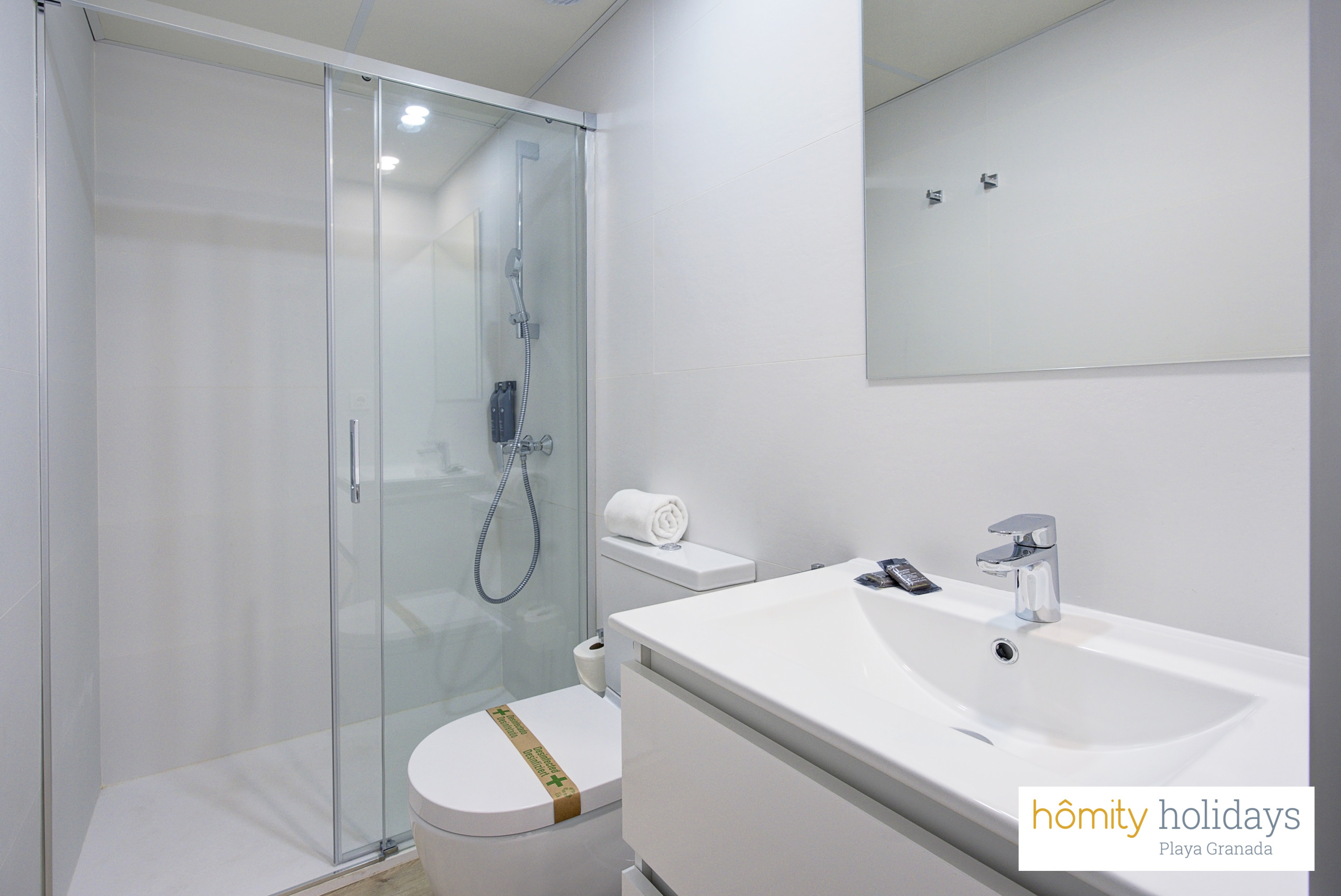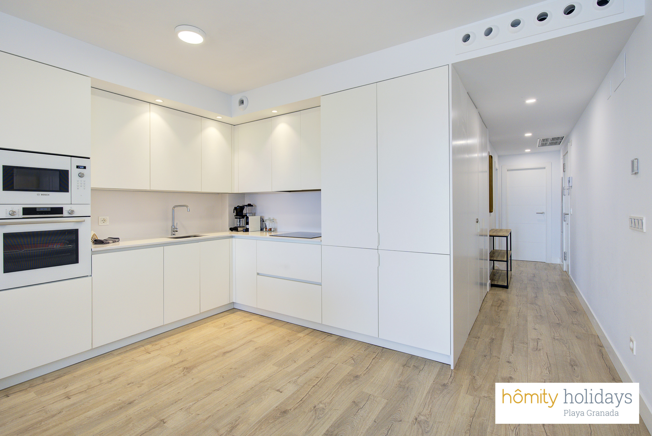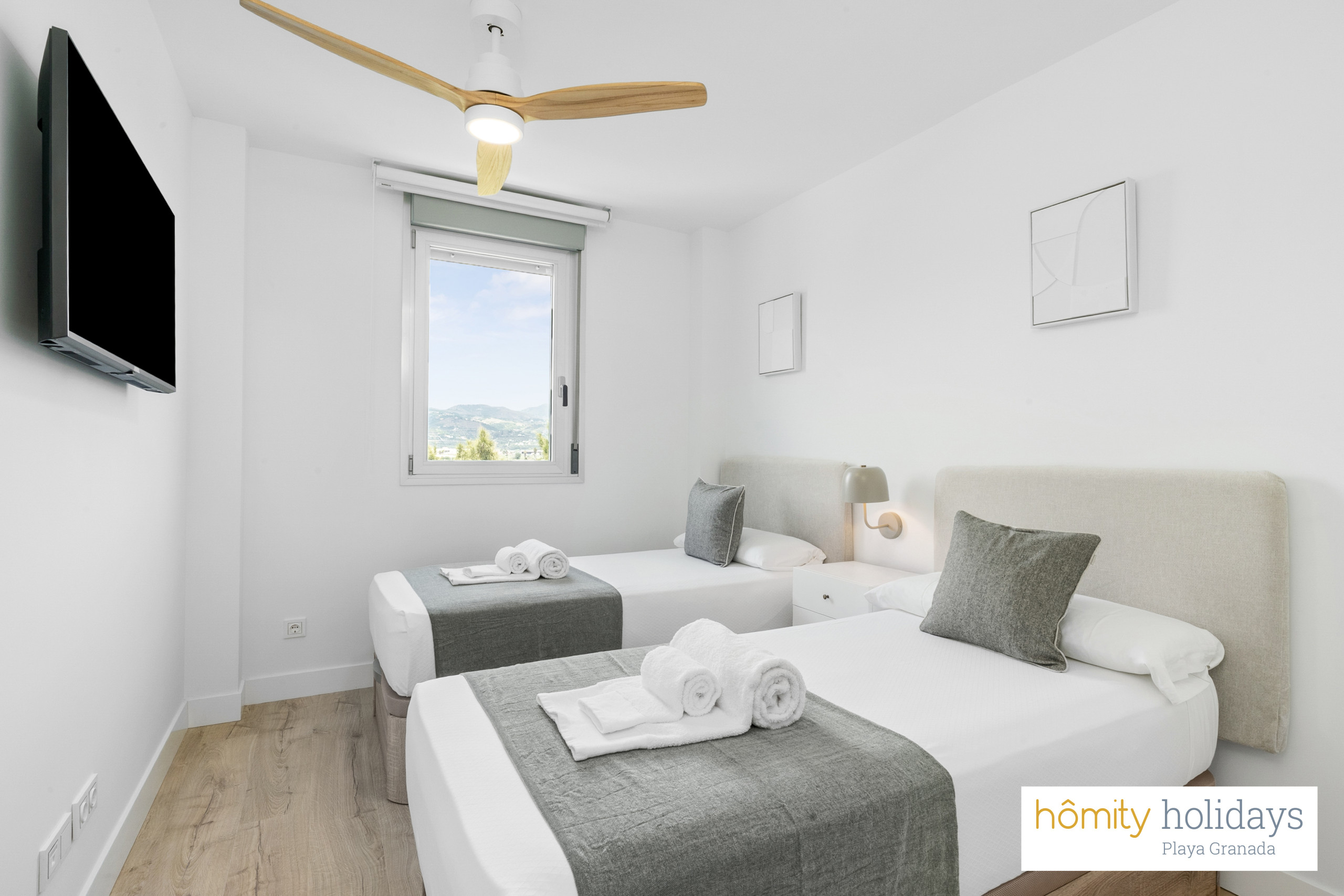 Tilbyder elevator, terrasse 100 m², vaskemaskine, strygejern, internet (wifi), hårtørrer, børneområde, padelbane, varmepumpe, aircondition i hele ferielejligheden, swimming pool fælles, garage til den samme bygning, 3 electric anti-mosquito devices, 3 fans, 3 Fjernsyn.