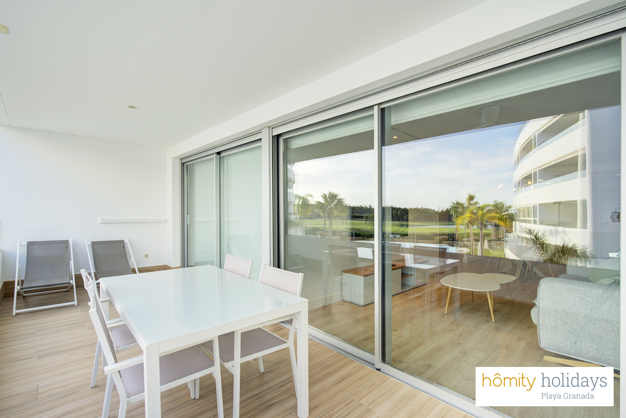 This luxury apartment has 2 bedrooms, capacity for 6 people, an area of 78 m² and a 15 m² terrace. It is located 800 m from the beach and 1 km from the golf course.