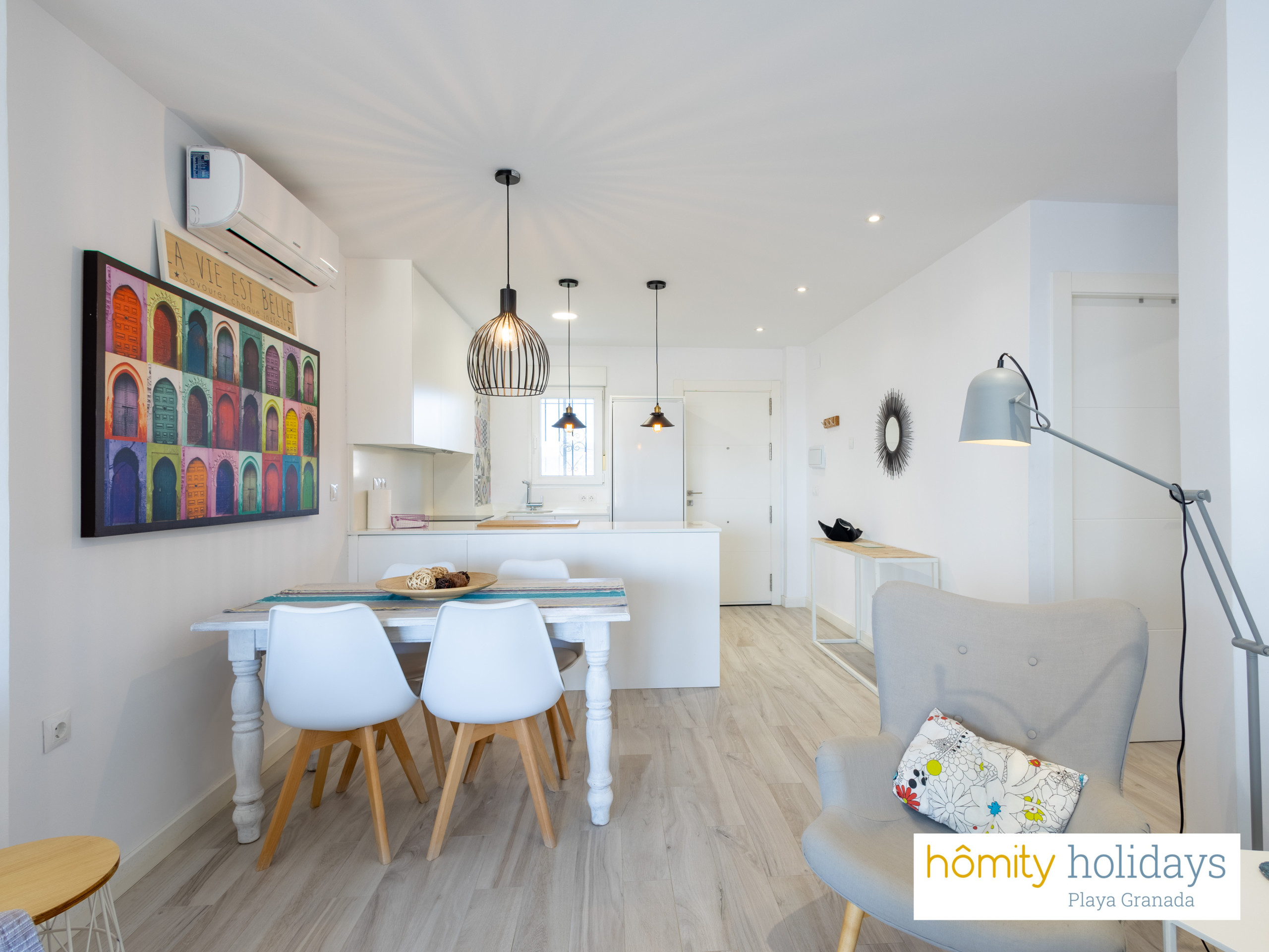 The property is located 1 km from Playa Burriana sand beach, 70 km from Aeropuerto Internacional de Málaga international airport. The house is situated in a lively neighborhood next to the sea.