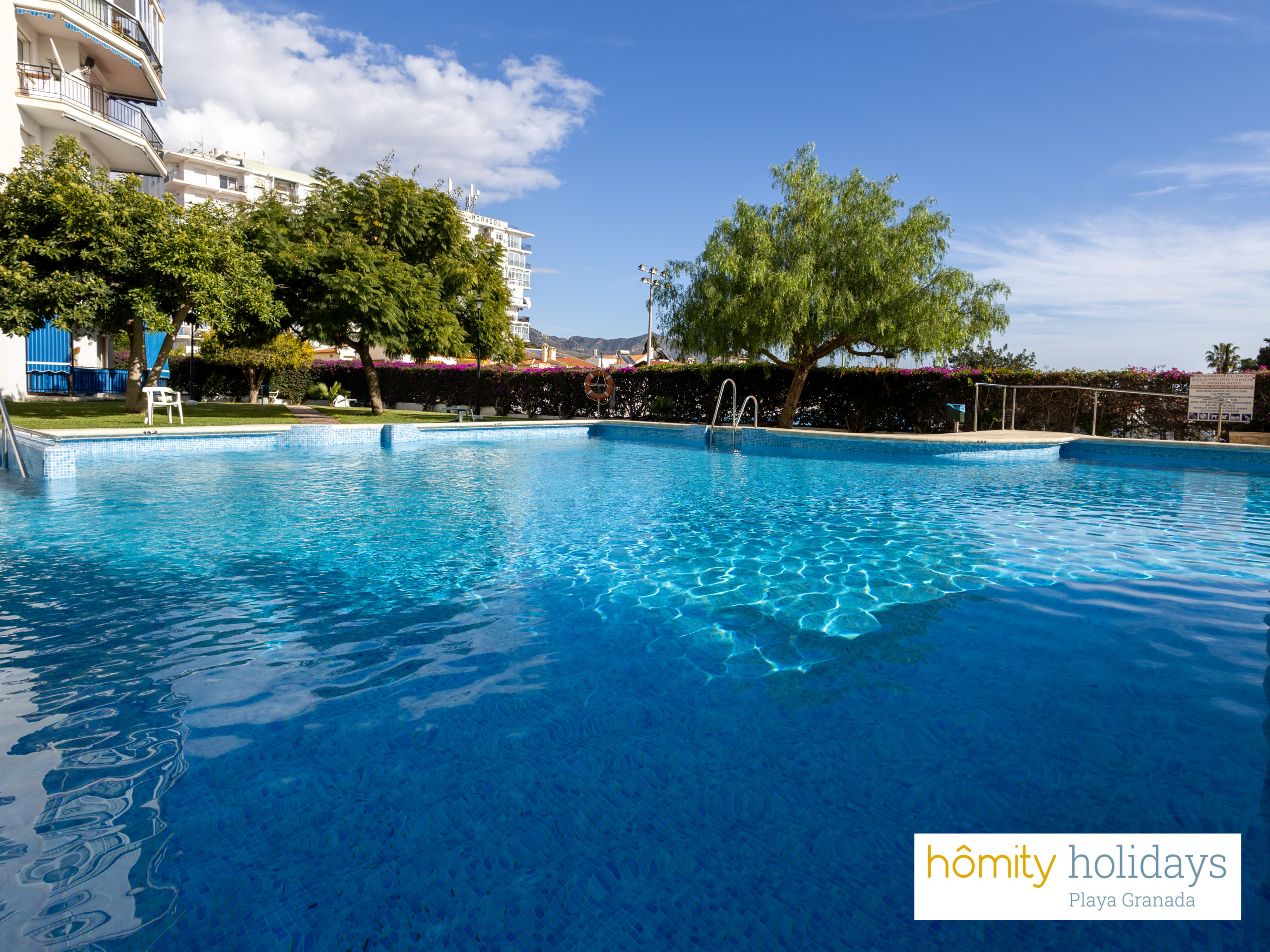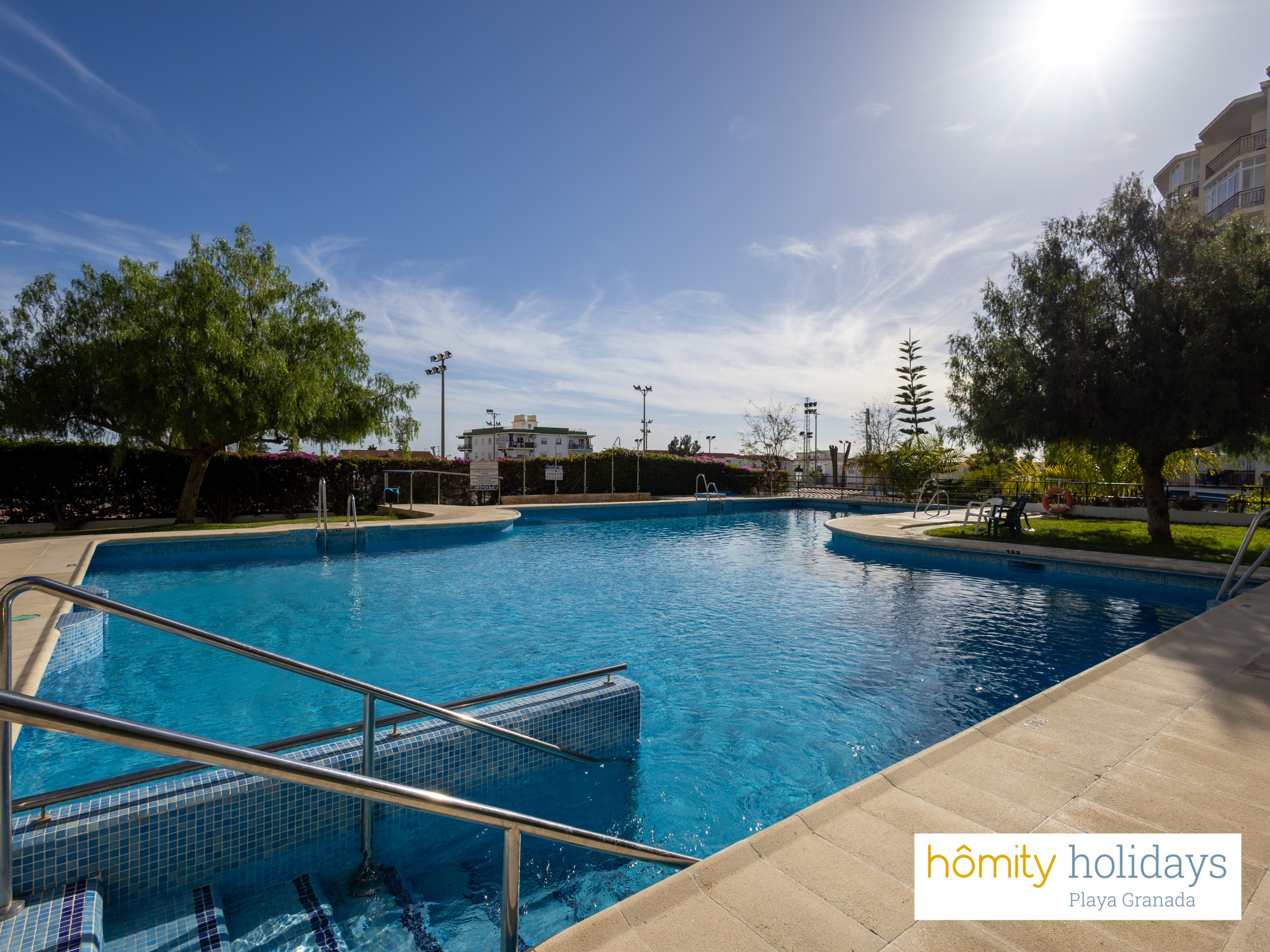 The apartment is comfortable, has an exterior, and is 60 m². It has views of waterfront and the swimming pool.
